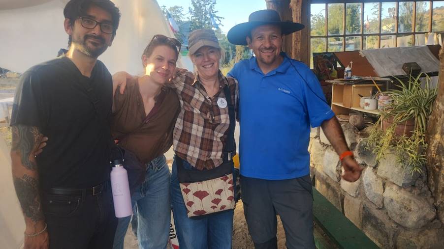 All the structures – a workshop, a semi-circular building “like an eye,” as Jorge describes it, overlooking the entire site at the entrance, and a tipi with kitchen facilities – are built from what could be found nearby: glass doors from soft-drink refrigerators, tree trunks, clay, and car tires. Many car tires. In the future, space will be needed for infrastructure, meaning the municipality cannot guarantee permanent usage rights, however, neighbors perceive the potential end of the Ecoparque Primavera as a a scenario that will not happen anytime soon. Funding remains a challenge, yet through countless volunteer hours and the reuse of materials, the project has already come a long way. By the end of 2025, they succeeded in obtaining legal recognition, formally establishing the “Eco Parque Primavera Environmental Committee”. This committee coaches a group of volunteers, recruited via Instagram. They managed to bring together neighbors of all ages, including people from different crafts and professional backgrounds. Many of the trees have been growing here for about a year and a half and appear to be surviving the harsh weather conditions. Large water tanks, filled by the municipality, are used to irrigate the plants. And there are still many ambitions: to host more activities, to create guided tours with stories. Jorge sketches one out for us on the spot.