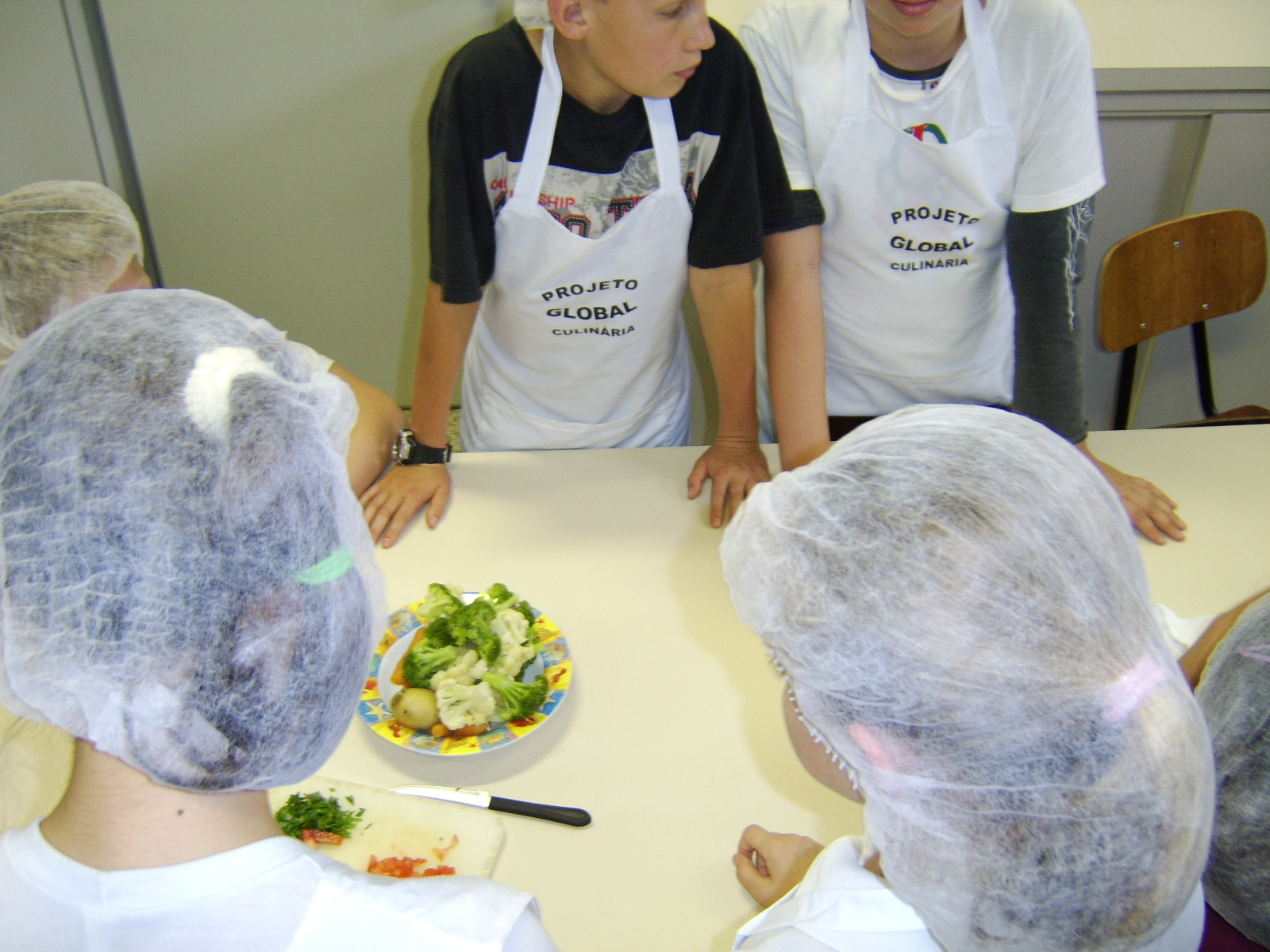 Secondly, the facilities were modern, clean and spacious with lots of different activities for children. The school meal is strictly speaking not served at school but at the after-school day care center. It is normal in Brasil that children only go to school half a day. Most children go home afterwards and eat at home. A school meal is for those who need it, this can be because there is food insecurity at home, or quite the opposite, because both parents are working. In the case of the center we visited, it was aimed at children from the latter category. One of the activities is cooking lessons.