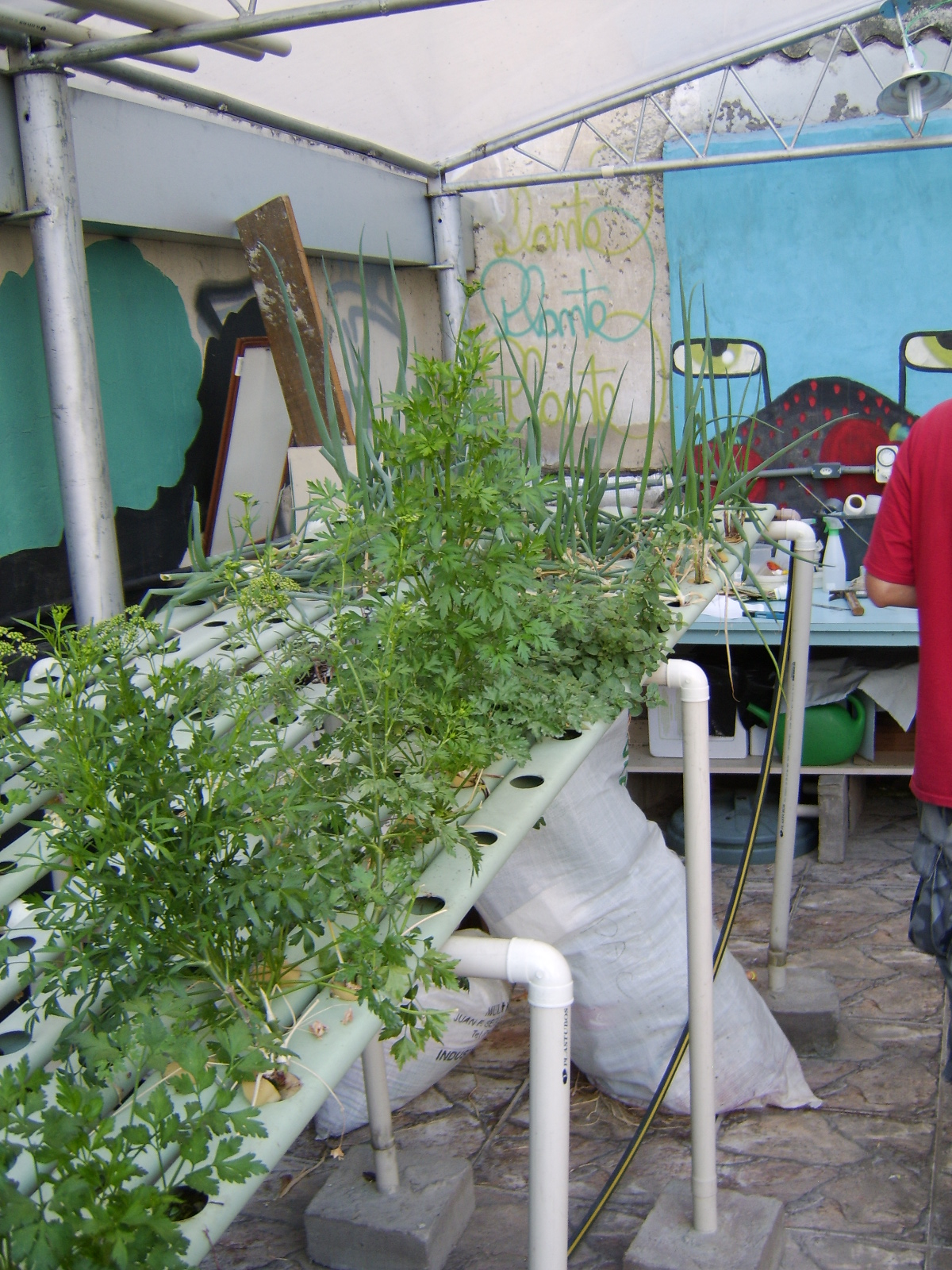 They claim to be the only example of rooftop farming in Porto Alegre. Hence, a revolutionary example in many ways. A student of last week’s class kindly offered to showed me around in Porto Alegre including unusual places such as the movement-community-cooperative COOPSUL. Right in the middle of the centre a building was squatted in 2005 related to the World Social Forum marches. The building was long-term abandoned and the movement of (somehow translated) ‘roofless’ people, the urban counterpart of the MST, asked with the squatting for the right to good housing. Their slogan; ‘Utopia e Luta’ which means Utopia and Struggle/Fight.