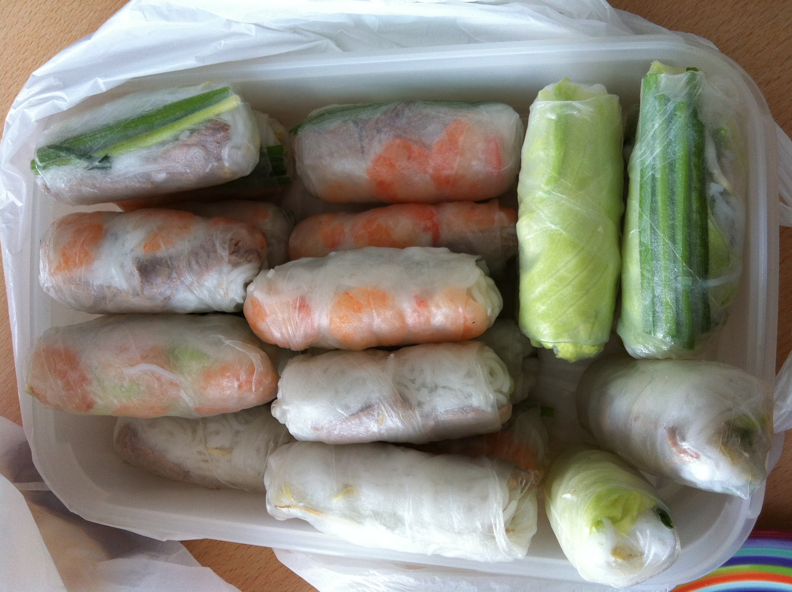 The rolls, however, had quite a story attached. Anh, the Vietnamese student told us that among her parents generation it is believed that bean sprouts arouse sexual desire. In a culture which values sons above daughters some action had to be undertaken after two daughters were born. Her mum, therefore cooked rice paper rolls exclusively filled with bean sprouts (taugé in Dutch) for her dad in order to inspire a son. It worked, the third child born, was a boy. To balance unexpected desires erupting, she also included a specific Coriander, know and used by Monks for the opposite effect. Nothing inappropriate happened.