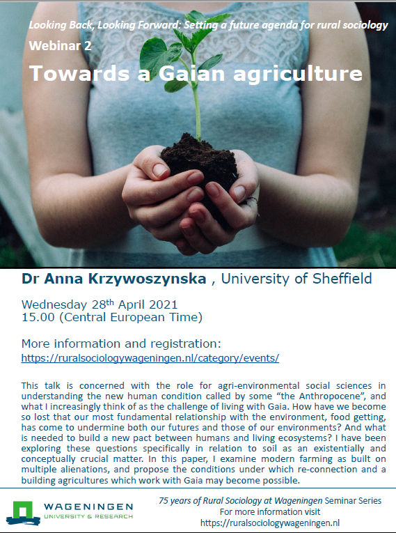 ‘Towards a Gaian agriculture’ – Dr Anna Krzywoszynska.