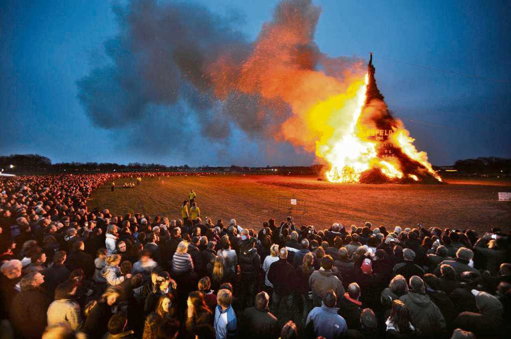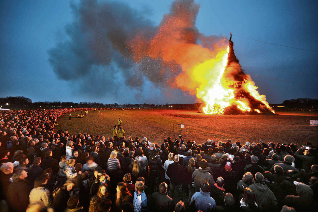 In het kader van ‘verbranding’ mag hij hier zeker niet ontbreken: het paasvuur, en als we dan toch bezig zijn: carbid schieten. Net als de races gelden ze als sociale hoogtepunten in het jaar van met name jonge mannen, hoewel in hun kielzog vele plattelanders van allerlei pluimage zich laten zien op dergelijke happenings (hetzelfde geldt overigens voor de race-evenementen – vaak het kloppende hart van een dorpsfeest). Snoeiafval wordt het hele jaar opgespaard om tijdens Pasen te verbranden en voor het carbid schieten worden professionele feesttenten gehuurd om de vele bezoekers te kunnen voorzien van een dak boven hun hoofd en de hapjes en drankjes wat te kunnen reguleren. Stikstof en fijnstof lijken roet in het eten te gooien. Gelukkig voor hen is een algemeen verbod nog ver weg, maar de maatschappelijke discussie erover draagt bij aan een gevoel van onderwaardering voor de plattelandsbewoneren haar gebruiken.