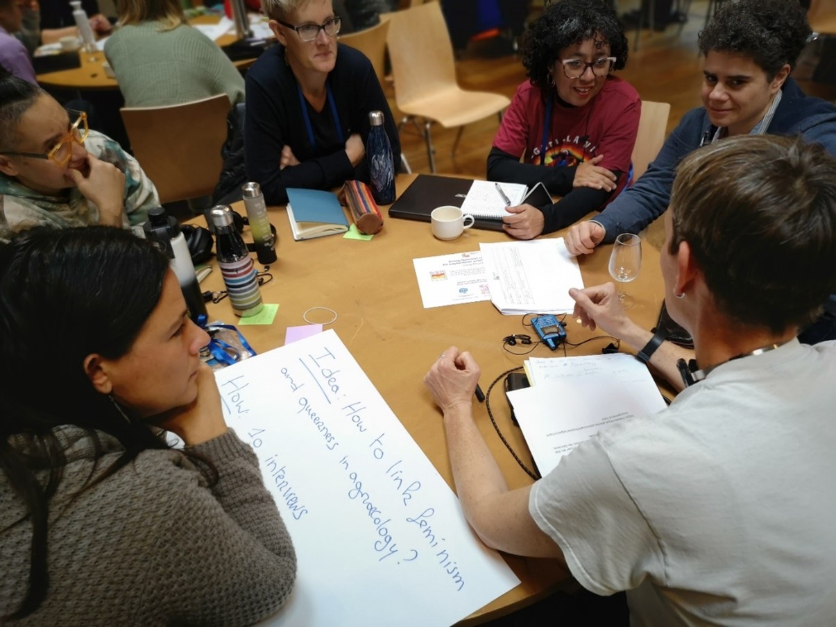 The four days were filled with engagement, with many conversations, moments of laughter and silence, many great presentations, and “a conversation that has been a long time coming”. This conversation was specifically interesting for my research towards a queer agricultural policy framework and took place within the session on gender diversities and intersectional feminisms in rural social movements. It was organised as a plenary first and then split up into small groups, where we had space to reflect and discuss.