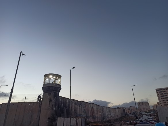 During the harvest, I witnessed and felt the geography of violence and occupation. Settlers attacked us, pushing us off the land as we picked olives. Israeli settlements and illegal outposts are strategically taking over the hilltops, surveilling Palestinian villages from above. Checkpoints and the apartheid wall restricted our movement, while massive Israeli flags dominating highways, hilltops, and Israeli homes were a constant reminder of the occupation. Settler graffiti translating to “No future in Palestine,” written on walls across the streets, was a strong visual message highlighting not only a reality filled with violence but also the escalating creeping annexation of the West Bank.