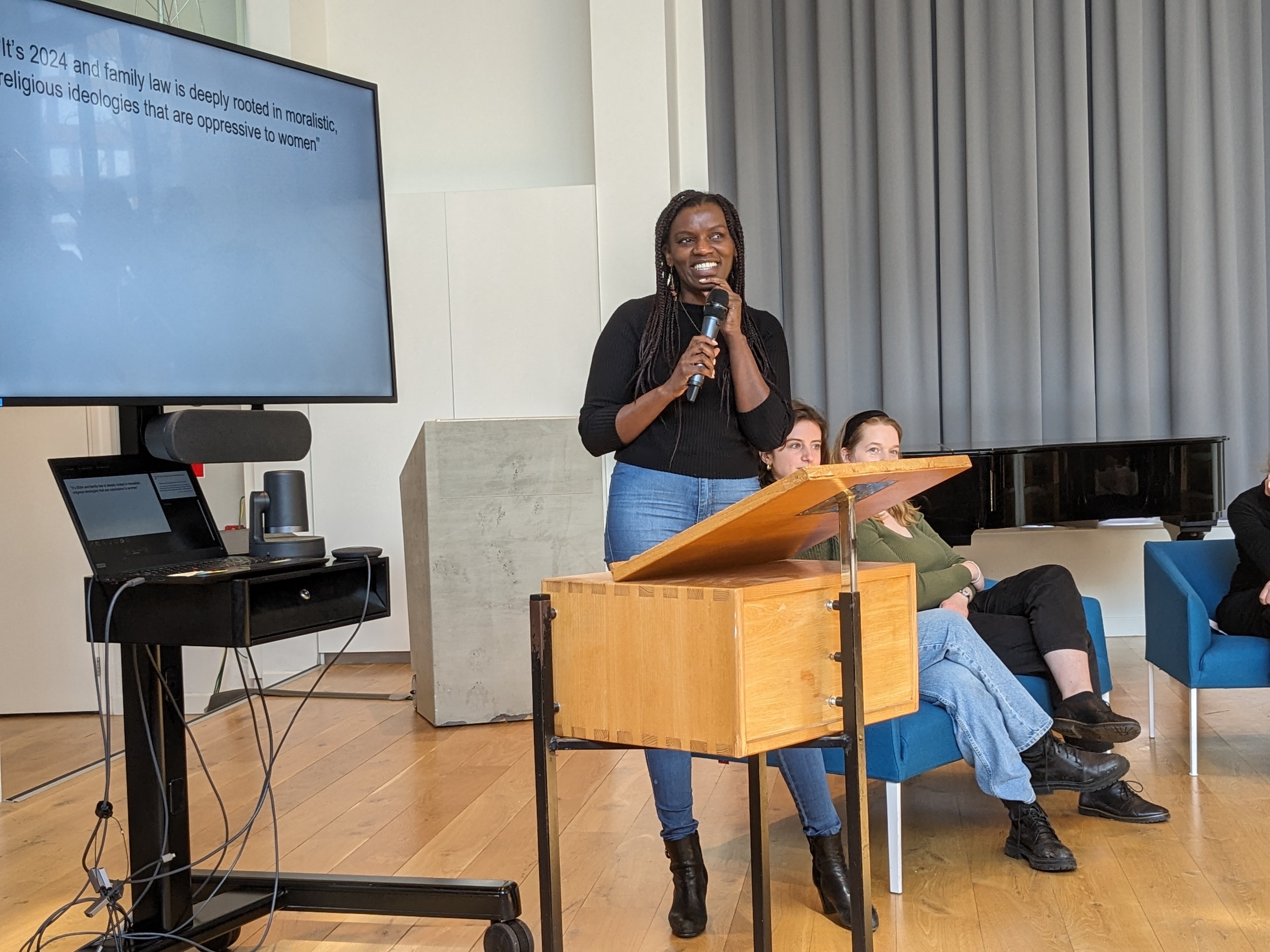 Following the introduction, a panel of researchers, all specializing in gender, equality, and power, presented propositions concerning women’s issues. Georgia Diamanti and Marije van Santen discussed the impact of the Common Agricultural Policy on women, followed by Tabitha Muriuki’s exploration of oppressive ideologies within family law. Margriet Goris concluded with a proposition addressing the gender pay gap and options available to men.