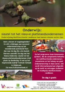 My thesis focusses on the many European and Dutch farming families which, urged by the environmental, social and economic crisis in agriculture, have diversified their conventional production-oriented farming activities by developing new non-farming businesses on their existing farms. Currently, there are many farmers who are involved in agro-tourism, nature and landscape management, processing and selling of farm products and, more recently in The Netherlands, professional (child)care and on-farm education. The development of such new business activities by these farmers represents a shift away from conventional production-oriented farming towards a more ‘multifunctional’ farming model in which the role of agriculture goes beyond mass food production.