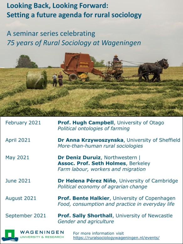 We are proud to announce our upcoming seminar series ‘Looking back, Looking Forward: Setting a future agenda for rural sociology’ as part of the 75th anniversary celebration of Rural Sociology. We will kick off the series in February and continue throughout 2021, leading up to our grand anniversary celebration on the 24th of September. Continue reading